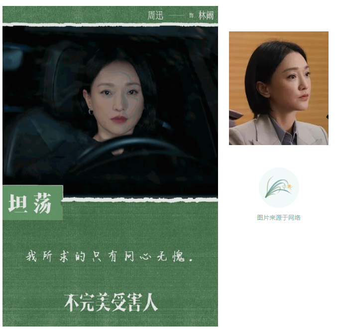 剧中,林阚律师是成功的法律顾问,在成功被举报性侵并刑拘时,他说过“你是我最信任、最亲密的合作伙伴”,也谆嘱公司此期间一切法律事务均交由林阚处理,出于律师身份的职业素养,林阚理性、没有大幅情绪波动,相比剧中其他角色,一直冷眼旁观的林阚有明显的游离感,从她做事的风格和“在法律允许的范围内,替委托人争取权利的最大化”等台词中,彰显出几近苛刻的职业操守。为此她光性侵案件就获得了成功支付的500万律师费。